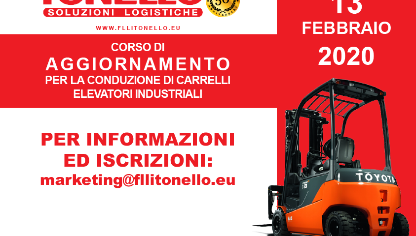 Il corso si svolgerà il 13 FEBBRAIO dalle ore 08.30 alle ore12.30 presso Tonello Fratelli s.r.l., Via E.Mattei 9 – Motta di Livenza (TV).